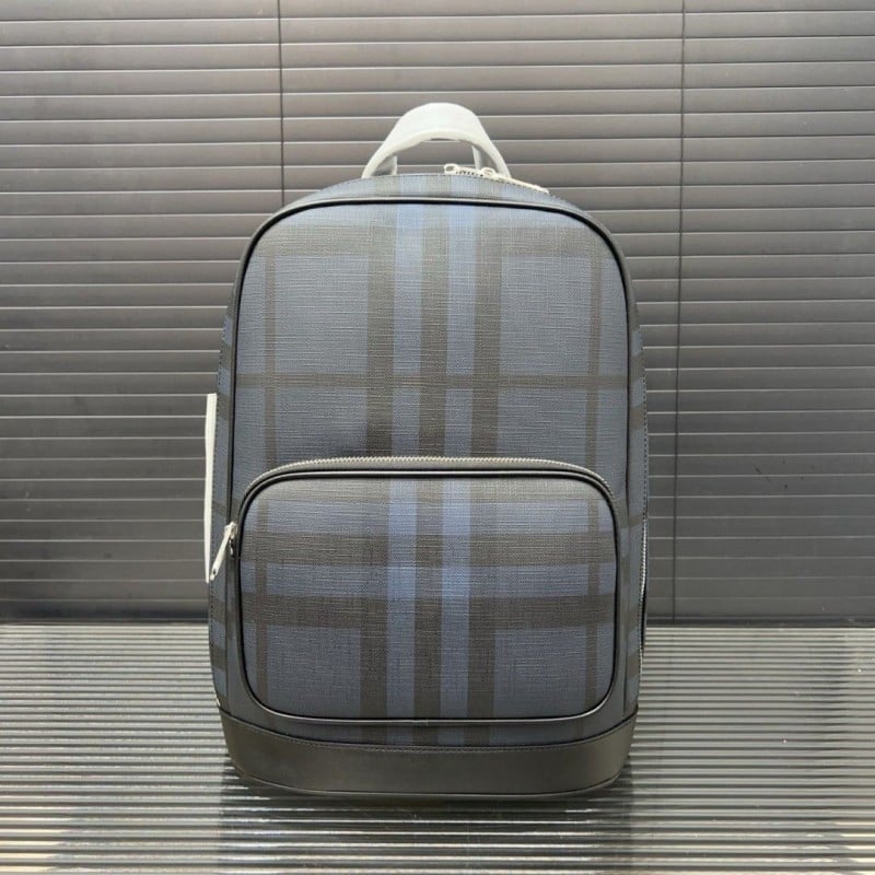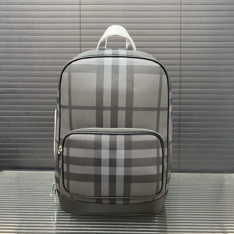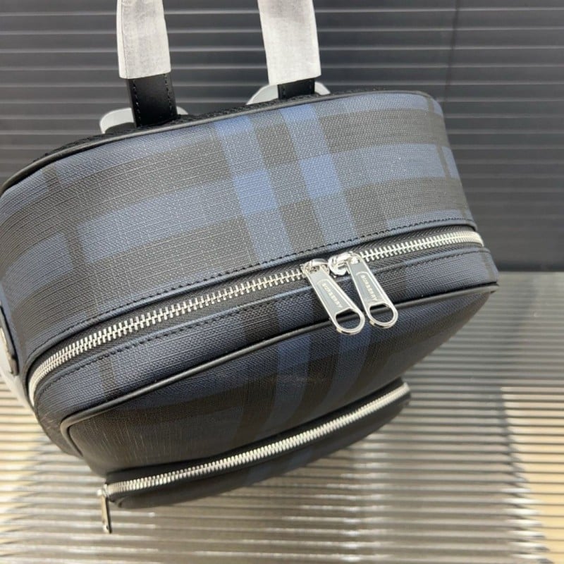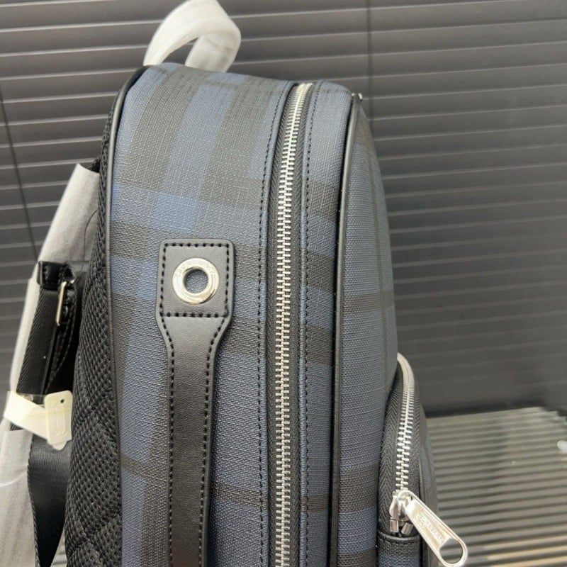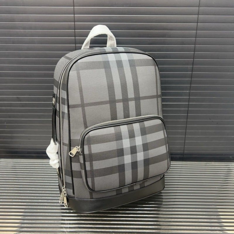 Burberry Checkered Stripe Printed Leather Backpack