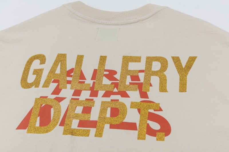 The GALLERY DEPT Gold Foil Letter Print T-Shirt is a perfect blend of streetwear style and comfort. Featuring a bold gold foil back print and a soft vintage-washed fabric, this unisex tee is designed for those who appreciate high-end casual fashion with lasting durability.