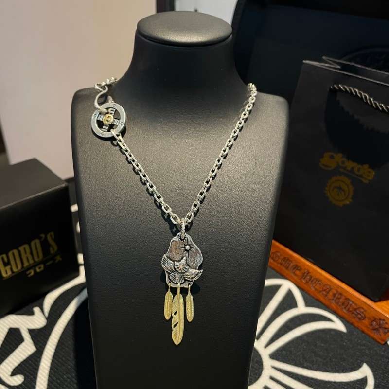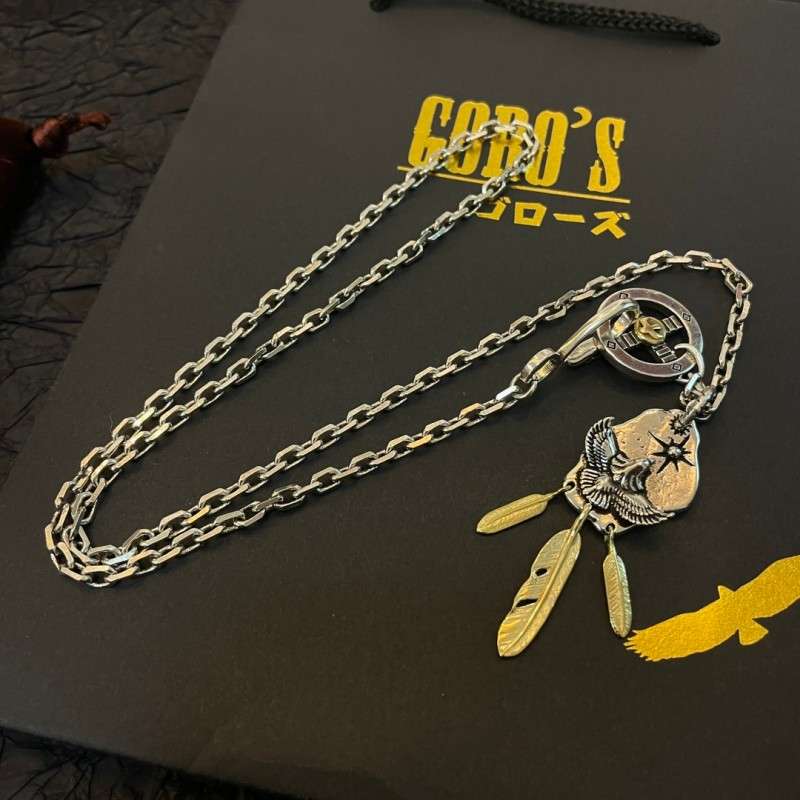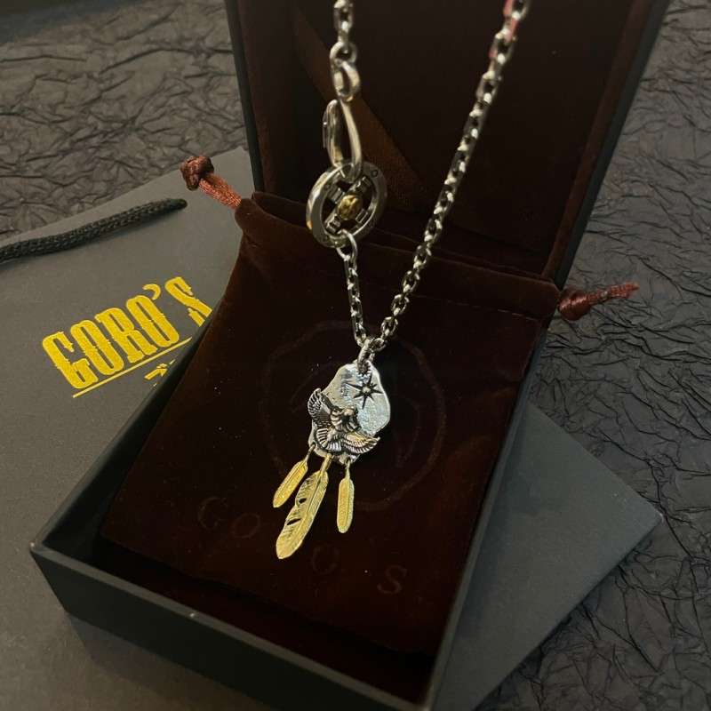 This necklace showcases Goro’s iconic soaring eagle, detailed with gold-plated accents. Crafted entirely by hand, it follows the shape and proportions of the original official style — combining retro punk aesthetics with traditional Japanese artistry.